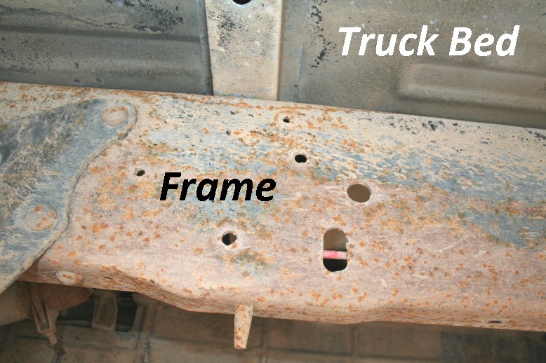 The truck bed frame is rusted but it’s only surface rust, not rust through or extensive rot. Simply stated, the frame is in great shape. Notice the truck bed above isn’t rusted at all.